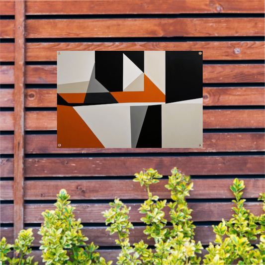 Abstract geometrisch spel van oranje en zwart tuinposter