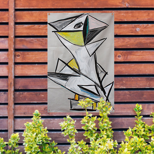 Abstract geometrisch vogel kunstwerk met kleuren tuinposter