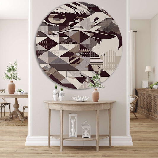 Abstract Geometrische Adelaar in Zwart-Wit aluminium muurcirkel