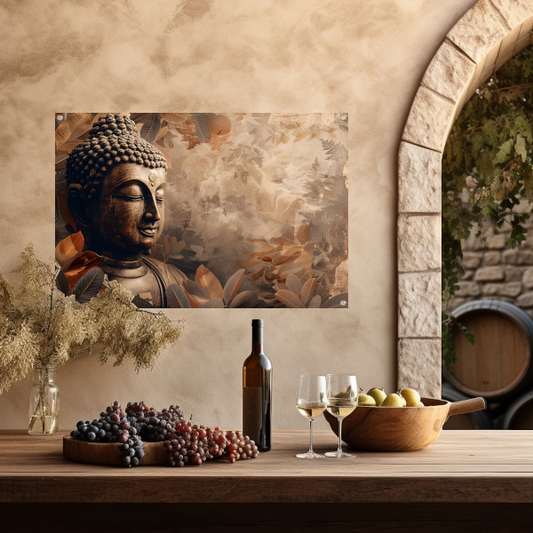 Boeddha Meditatie in Eclectische Bloementuin tuinposter