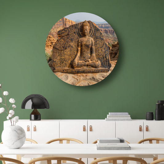 Boeddha met Antieke Petrogliefen op Steen acrylglas