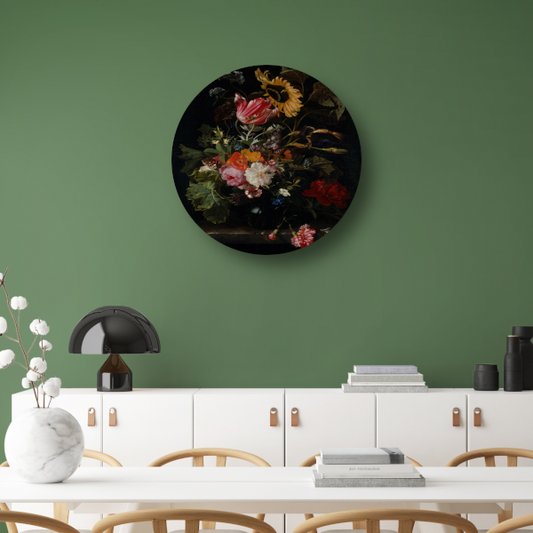 Boeket bloemen in een vaas - Maria van Oosterwyck aluminium muurcirkel