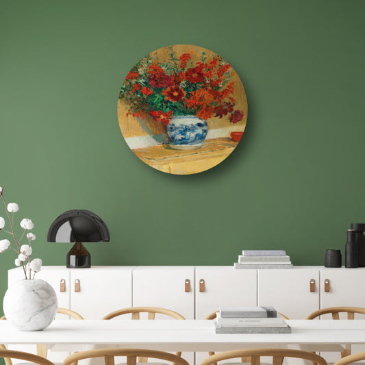Boeket bloemen in blauwe vaas - Jacques-Émile Blanche aluminium muurcirkel