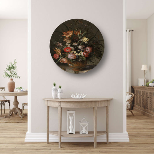 Boeket bloemen uit 1680 aluminium muurcirkel