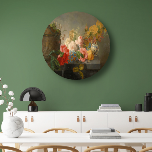Boeket bloemen in een vaas - Maria van Oosterwyck forex muurcirkel