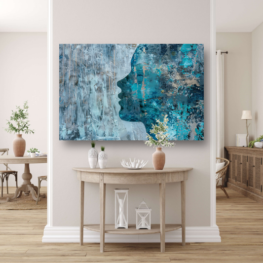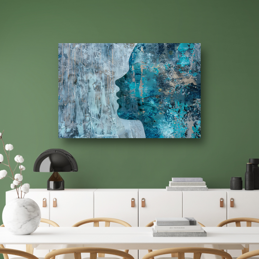 Abstract Gezicht in Blauw, Zwart en Grijs canvas