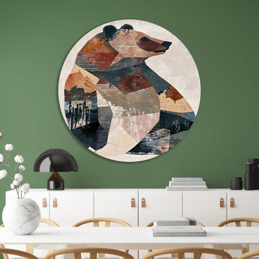 Abstract Geometrische Beer in Aardse Tinten aluminium muurcirkel