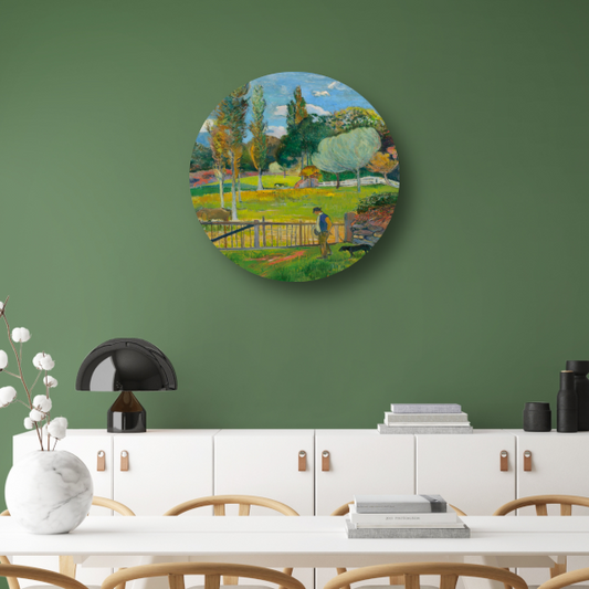 Boer en zijn hond bij een hek - Paul Gauguin aluminium muurcirkel