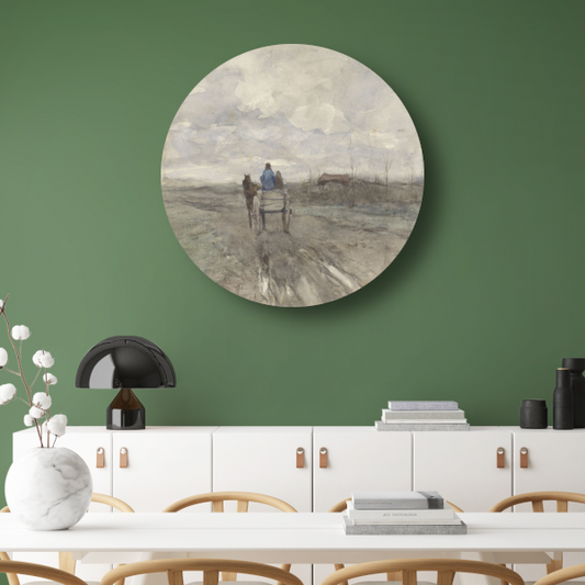 Boerenkar op een landweg - Anton Mauve aluminium muurcirkel