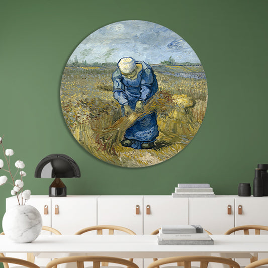 Boerin die schoven bindt - Vincent van Gogh aluminium muurcirkel