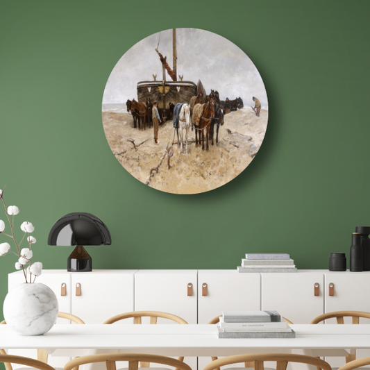 Bomschuit op het strand - Anton Mauve aluminium muurcirkel