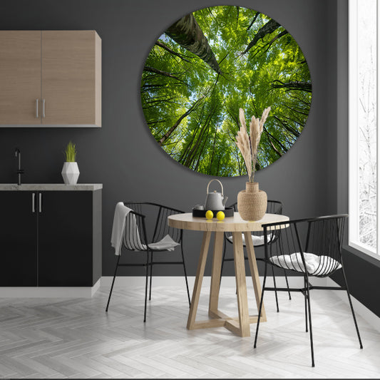 Bomen reiken naar de groene hemel aluminium muurcirkel