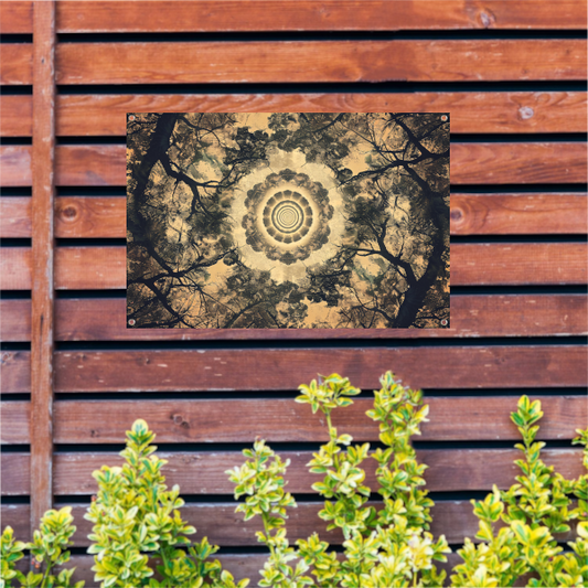 Bomenspiraal in caleidoscoop aluminium muurcirkel