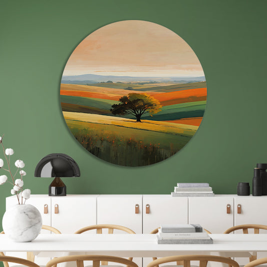 Boom in Herfstkleuren op Golvende Heuvels aluminium muurcirkel