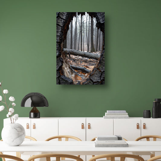 Bos na de regen door omgevallen boom aluminium muurcirkel