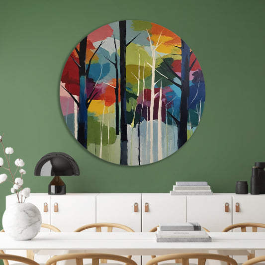 Bosgezicht in Abstracte Kleurenpracht aluminium muurcirkel