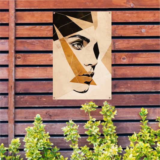 Abstract Gezicht in Geometrische Sepia Tinten tuinposter