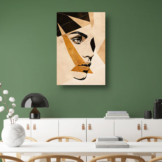 Abstract Gezicht in Geometrische Sepia Tinten canvas met baklijst