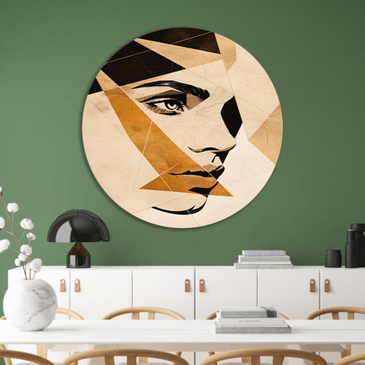 Abstract Gezicht in Geometrische Sepia Tinten aluminium muurcirkel