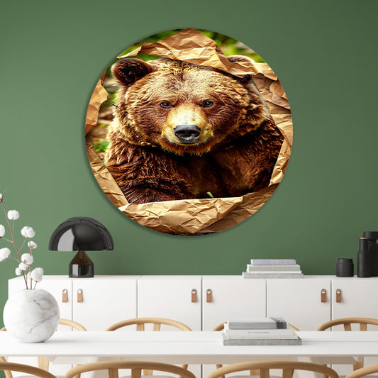 Bruine beer doorbreekt papier aluminium muurcirkel