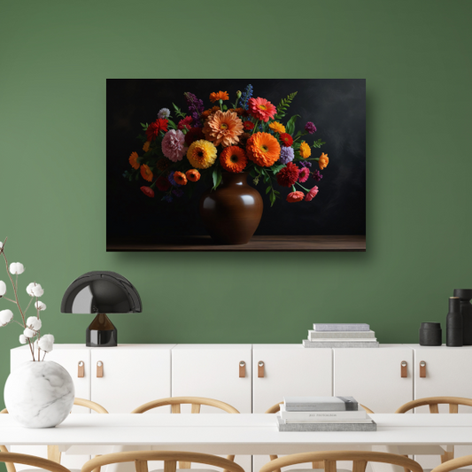 Bruine vaas met kleurrijke bloemenpracht canvas