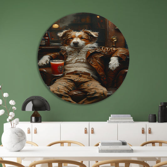 Charismatische Hond in Vintage Fauteuil aluminium muurcirkel