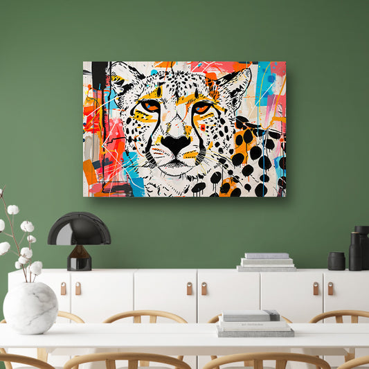 Cheetah schilderij in dynamische abstracte stijl canvas