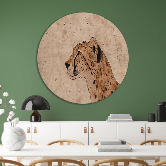 Cheeta kunstwerk met sepia achtergrond aluminium muurcirkel