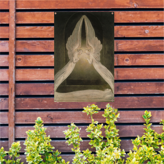 Christus in het graf, bewaakt door engelen - William Blake tuinposter