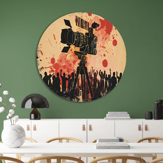 Cinema Celebratie in Expressieve Kleuren aluminium muurcirkel