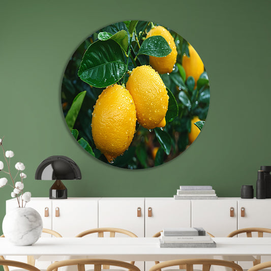 Citroenen en koffiebonen stilleven aluminium muurcirkel
