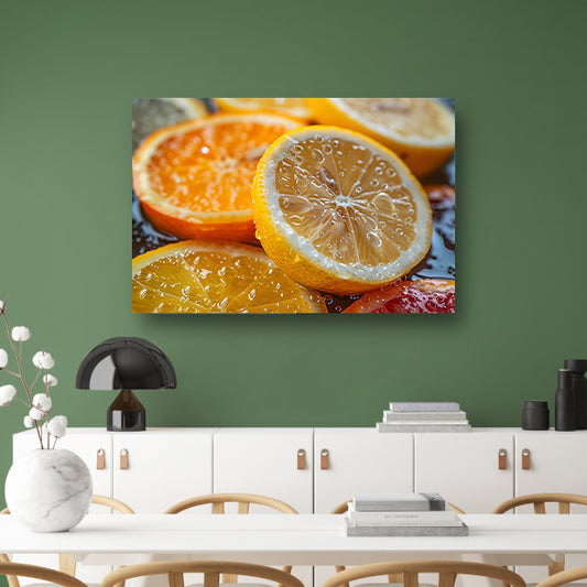 Citroenen en sinaasappels op snijplank canvas met baklijst
