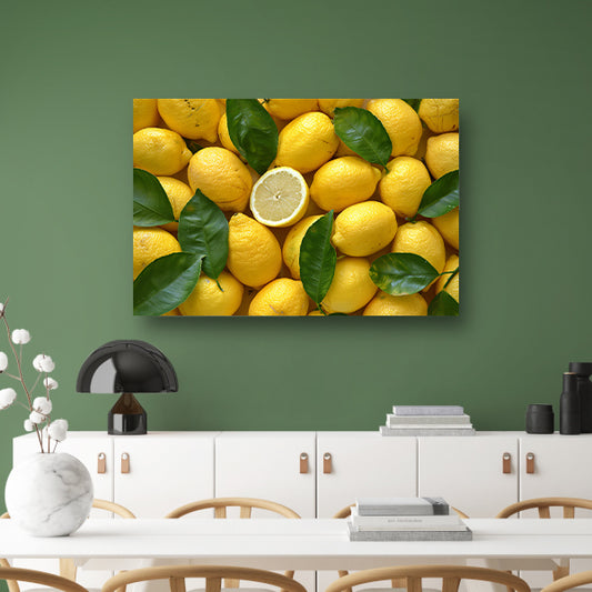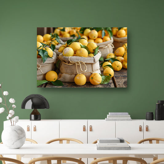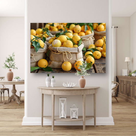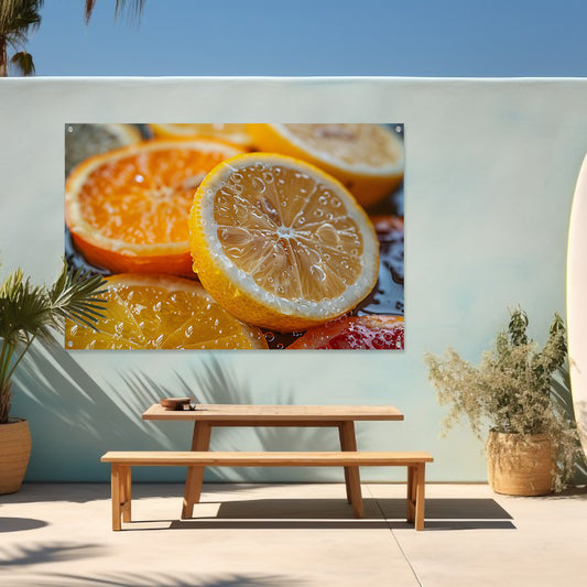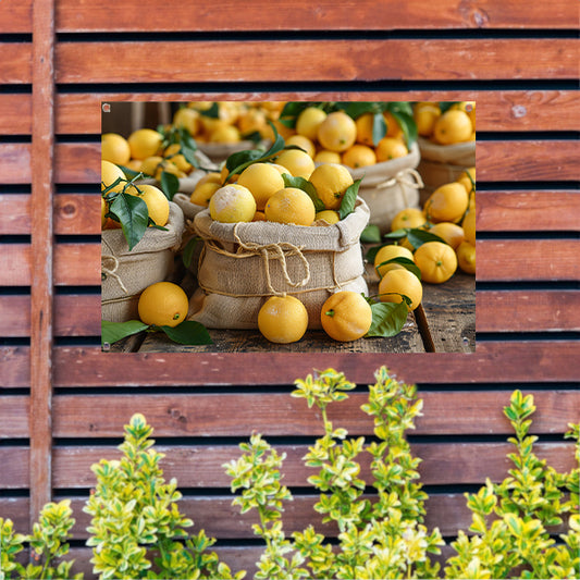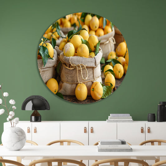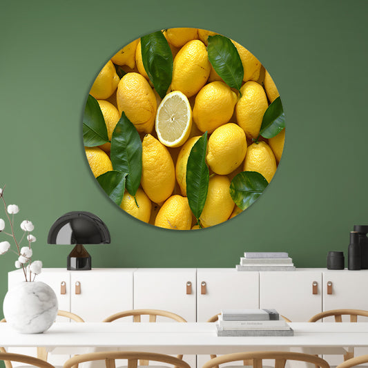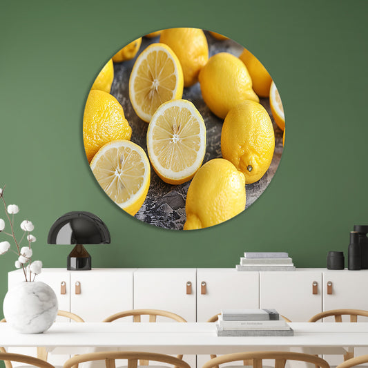 Citroenen stilleven op houten tafel aluminium muurcirkel