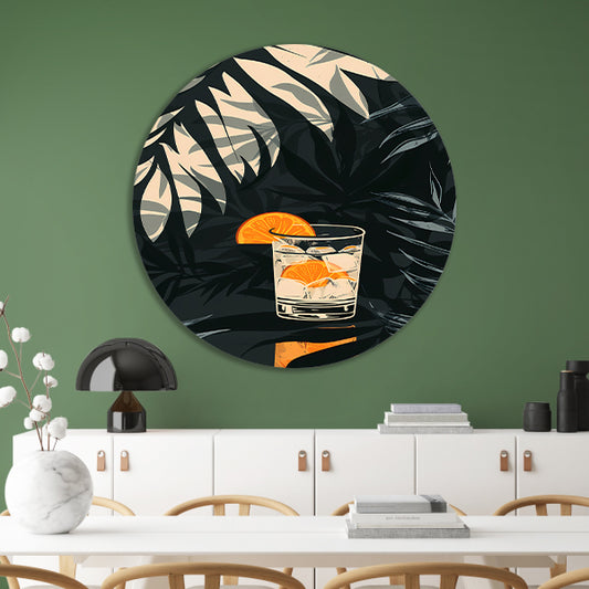 Citruscocktail in Glas met IJs en Planten aluminium muurcirkel