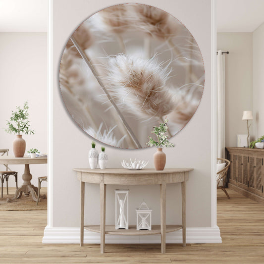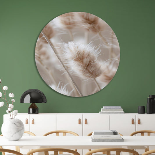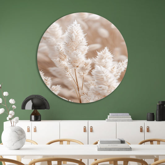 Close-up van Beige Graspluimen aluminium muurcirkel