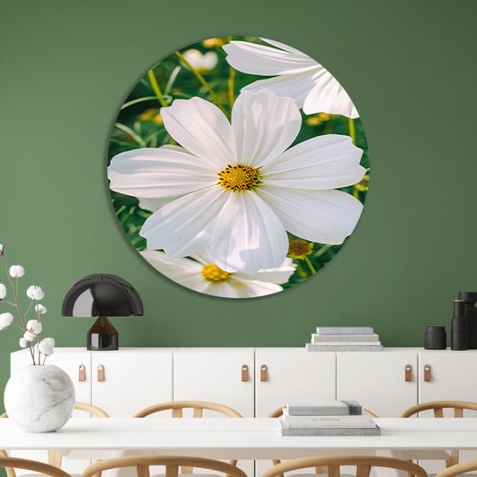Close-up van een witte Cosmos bloem aluminium muurcirkel