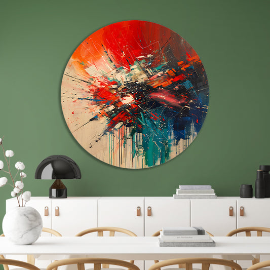 Abstract met Krachtige Kleuren en Energieke Lijnen aluminium muurcirkel