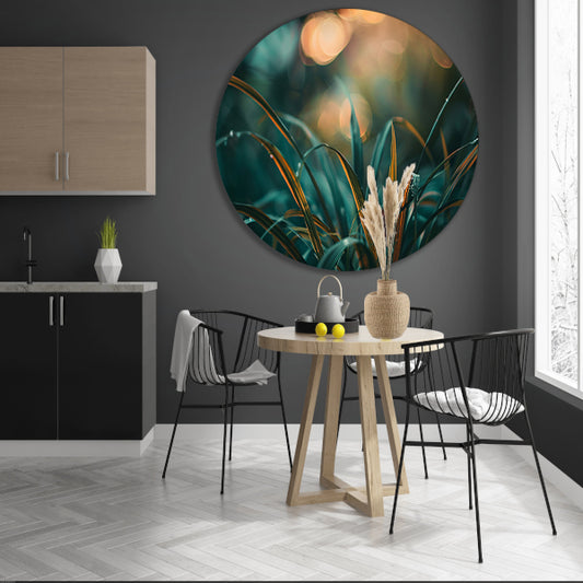 Close-up van gras met licht en bokeh aluminium muurcirkel