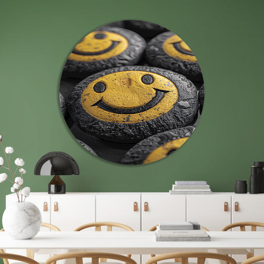Close-up van gele smileys met waterdruppels forex muurcirkel