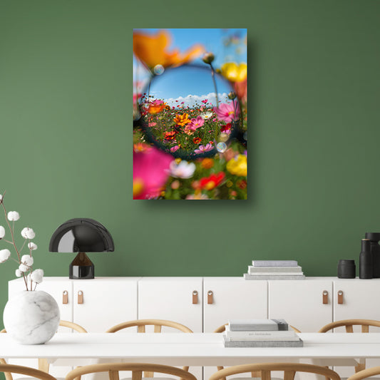 Close-up van kleurrijke bloemen in veld aluminium muurcirkel