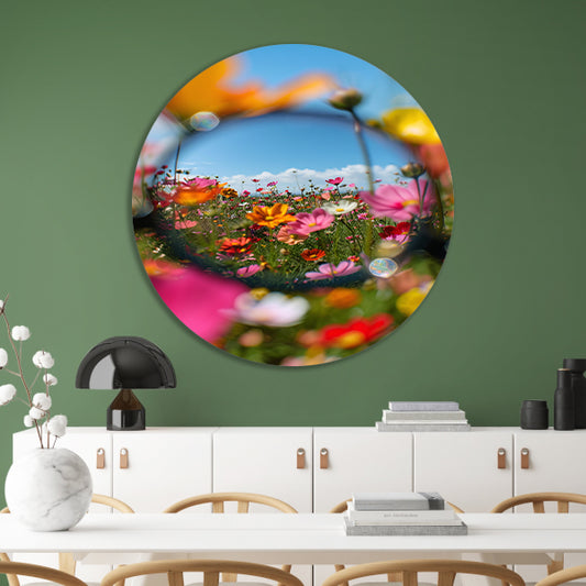 Close-up van kleurrijke bloemen in veld forex muurcirkel