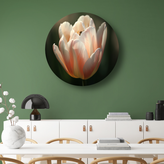 Close-up van roze bloemen in zacht licht aluminium muurcirkel