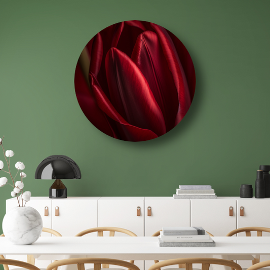 Close-up van rode bloem in donkere achtergrond aluminium muurcirkel