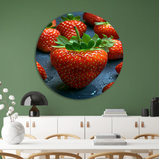 Close-up van sappige rode aardbeien met waterdruppels aluminium muurcirkel