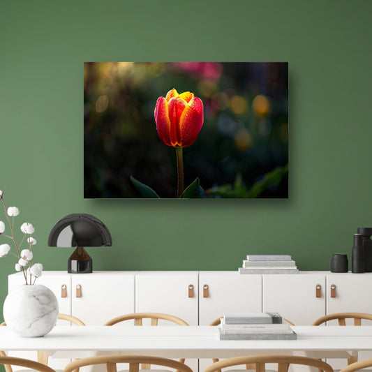 Close-up van tulp met dauwdruppels canvas met baklijst