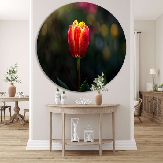 Close-up van tulp met dauwdruppels aluminium muurcirkel