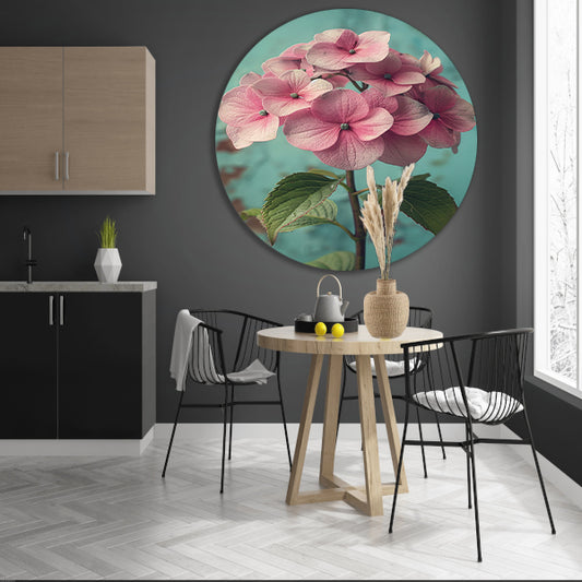 Close-up van Roze Hortensia met Turquoise Achtergrond forex muurcirkel