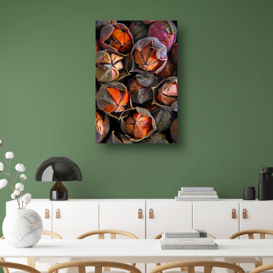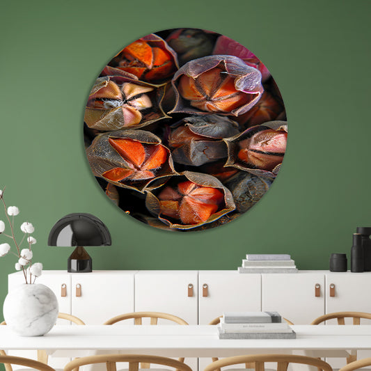 Close-up van zaaddozen met levendige kleuren forex muurcirkel