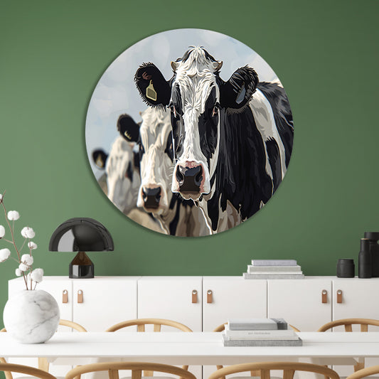 Close-up van zwart-witte koeien in landschap forex muurcirkel
