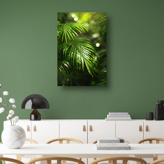 Close-up van zonovergoten palmbladeren canvas